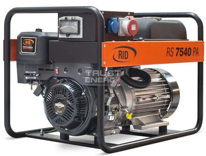 Бензиновый генератор RID RS 7540 PAE с АВР номинальной мощностью 6 кВт с двигателем Briggs&Stratton Vanguard 420 OHV - отличный электроагрегат демонстрирующий уверенный приём нагрузки как резервный источник питания, так и основной.